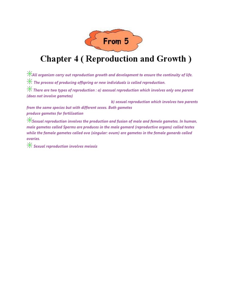 Text of form 4 spm biology chapter 5. 4.1.1 the necessity for organisms to reproduce. To biology form 4 chapter 5 cell division. Download 34745329 form 5 biology chapter 4 reproduction. All organisms carry out reproduction to: