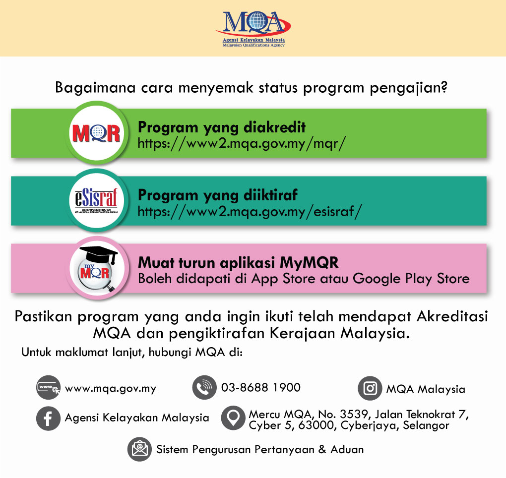 Semakan Official Agensi Kelayakan Malaysia Mqa Facebook from lookaside.fbsbx.com Pengiktirafan bagi sesuatu kelayakan akademik boleh disemak melalui laman portal unit pengiktirafan kelayakan, bahagian pembangunan modal insan, jpa. Seorang pembantu tadbir (kewangan) gred w17 memiliki kelayakan diploma dalam bidang perakaunan. Surat pengiktirafan kelayakan akademik daripada jabatan perkhidmatan awam (jpa). Tutorial pengisian hrmis untuk bahagian kelayakan akademik, kompentensi dan pengalaman untuk guru akademik biasa. Maklumat tambahan pengisian maklumat akademik. Buat makluman semua, sistem pengiktirafan kelayakan perkhidmatan awam (esisraf) merupakan suatu daftar yang menyenaraikan semua program pengajian. Semakan oleh para pelajar boleh dilakukan untuk memastikan mod pengajian yang diambil di universiti yang didaftarkan. Pengiktirafan kelayakan dari institusi pengajian tinggi luar negara yang tersenarai adalah merujuk kepada program yang dijalankan secara sepenuh masa di kampus induk universiti berkenaan.